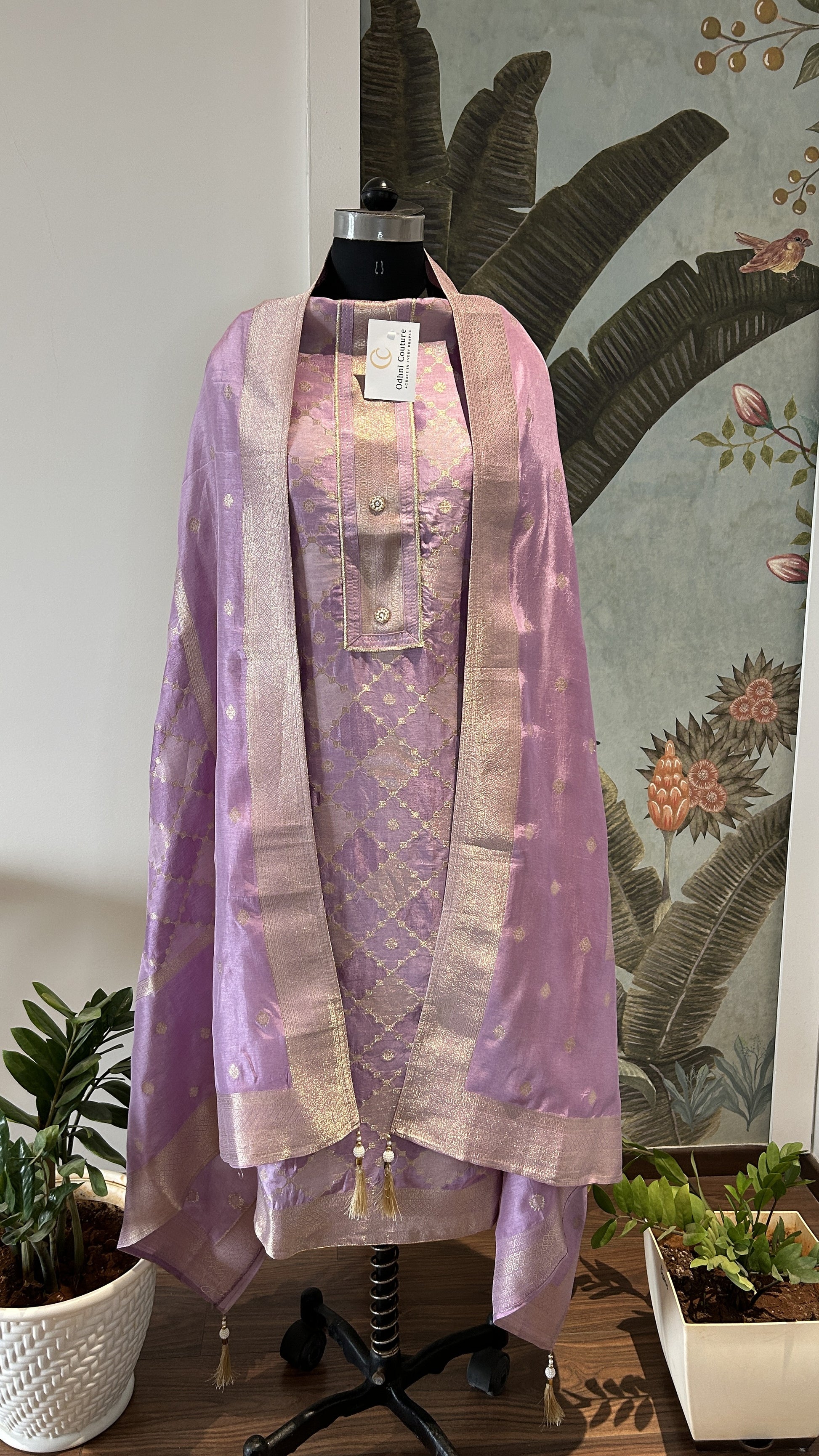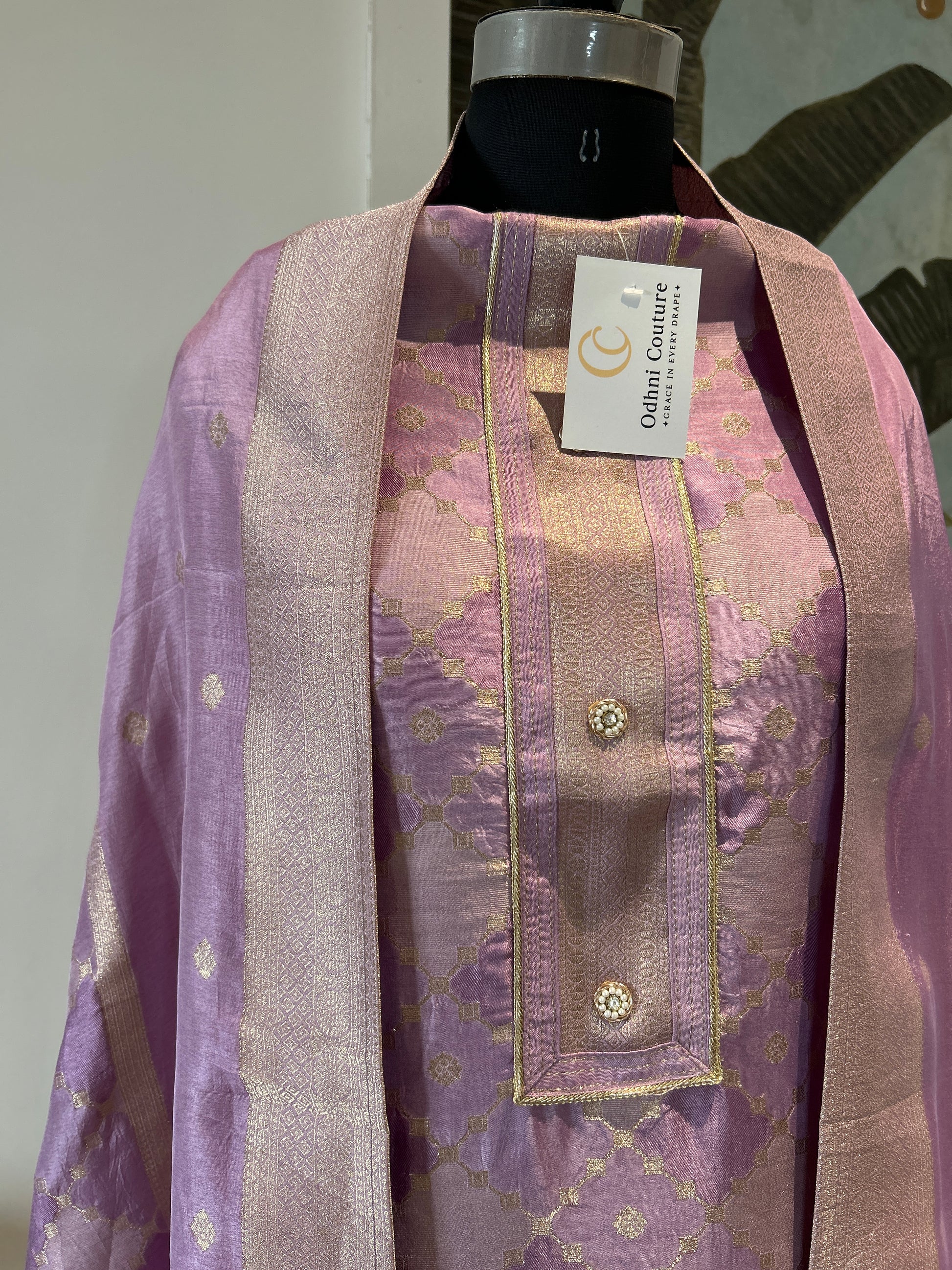 Paired with a coordinating lilac bottom, this piece transitions seamlessly from kitty parties to formal occasions.